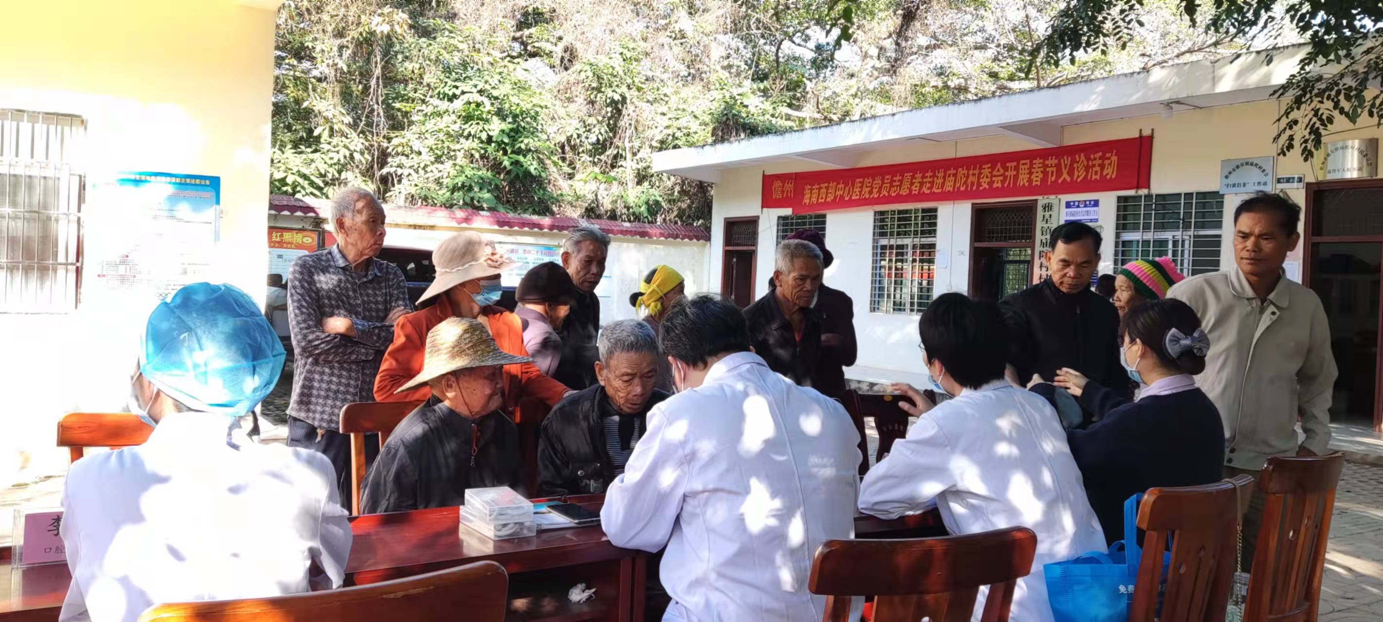 得知西部中心医院大专家将到自家门口开展送医送药活动,一大早,便有不少村民守候在村委会门口。上午9点,3支医疗队同时在飞巴、庙陀、田头三个村委会开始义诊活动。内科、外科、妇科、儿科、口腔科、眼科等各科专家齐上场,仅仅一个上午,就免费义诊130余人、发放健康宣传资料1000余份、免费发放药品近千元。