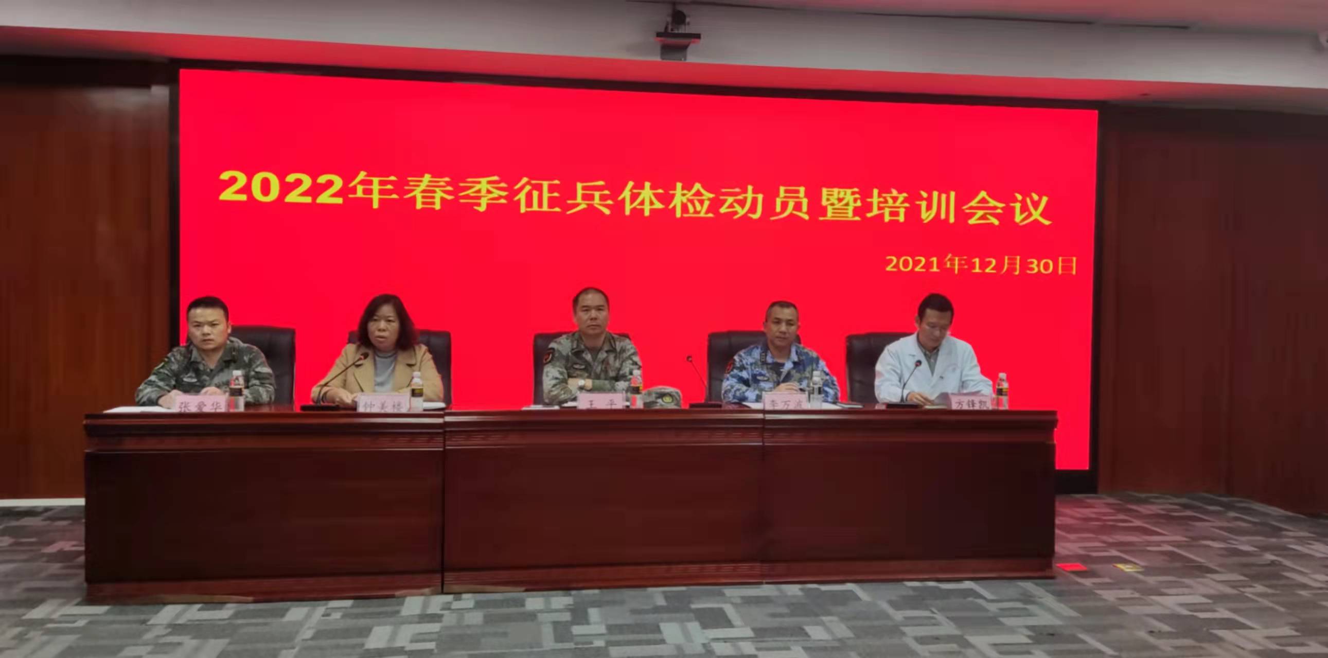 为圆满完成2022年“一年两征”兵员征集任务,12月30日下午,儋州市征兵办在我院召开2022年春季征兵体检动员暨业务培训会议。儋州军分区领导、海南西部中心医院党委书记钟美楼出席了此次会议。我院70余名医务人员参加了此次动员大会。