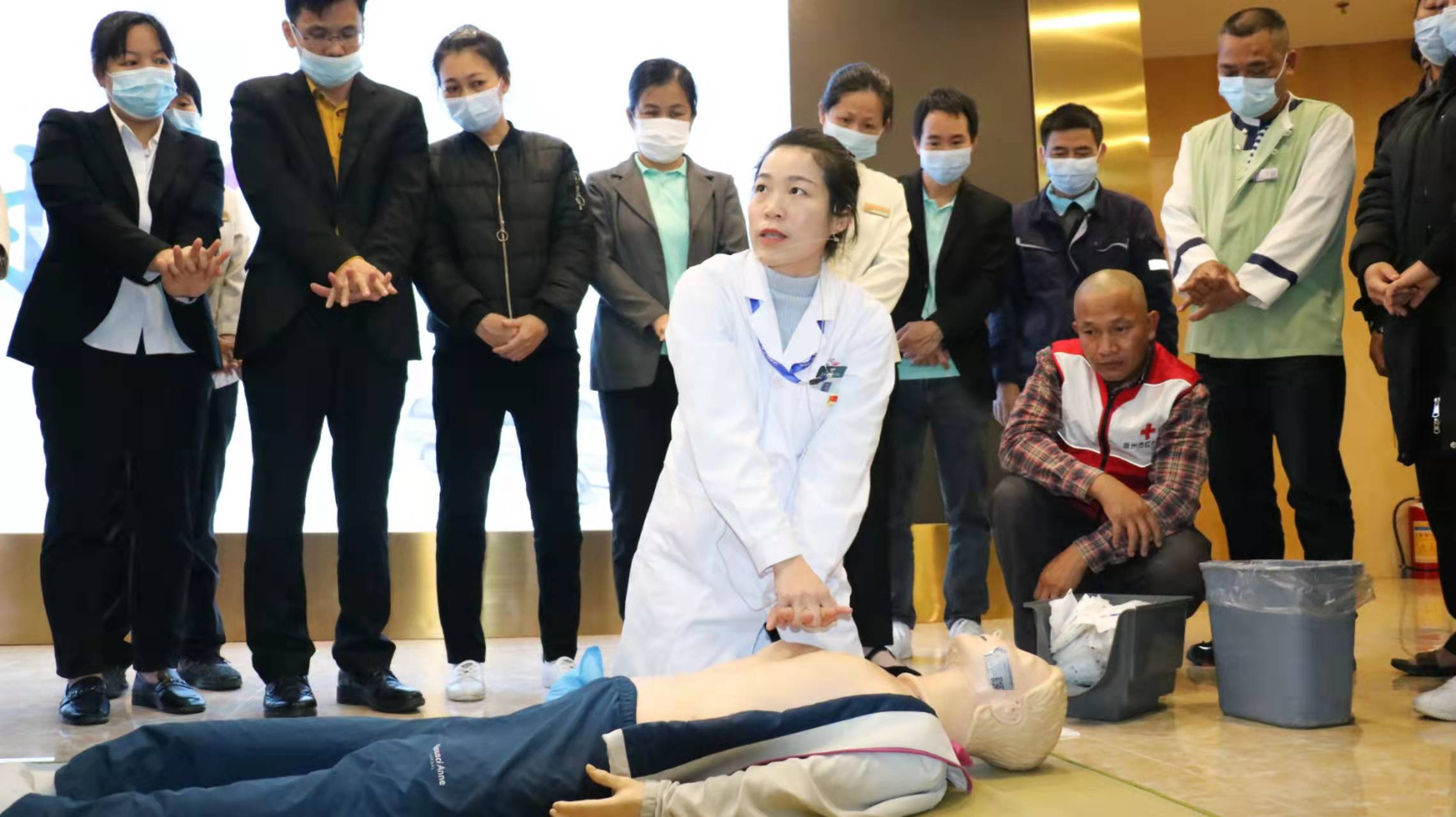 为深入贯彻落实“我为群众办实事”,助力健康儋州建设,12月9日,海南西部中心医院机关二支部联合医院人才工作站、教学科研部走进兰洋地质温泉酒店开展:“海姆立克急救法与心肺复苏术”公共急救科普培训。