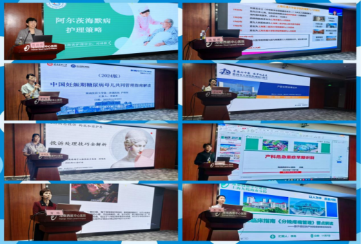 护理适宜技术领域:规范创新,提升专科水平。李敏香主任深度解读《中国妊娠期糖尿病母儿共同管理指南》,明晰筛查诊断、血糖管控及并发症预防等核心规范。此外,海南西部中心医院产科主任沈婕,护士长万玲、李炼,儋州市人民医院产科护士长符以娟分别围绕“产急危重症孕产妇早期识别及处理要点”“导乐分娩实践”“分娩疼痛管理技巧”“产前会阴按摩操作规范”等实用技术展开专题讲解,为提升产科护理服务同质化水平提供具体指导。