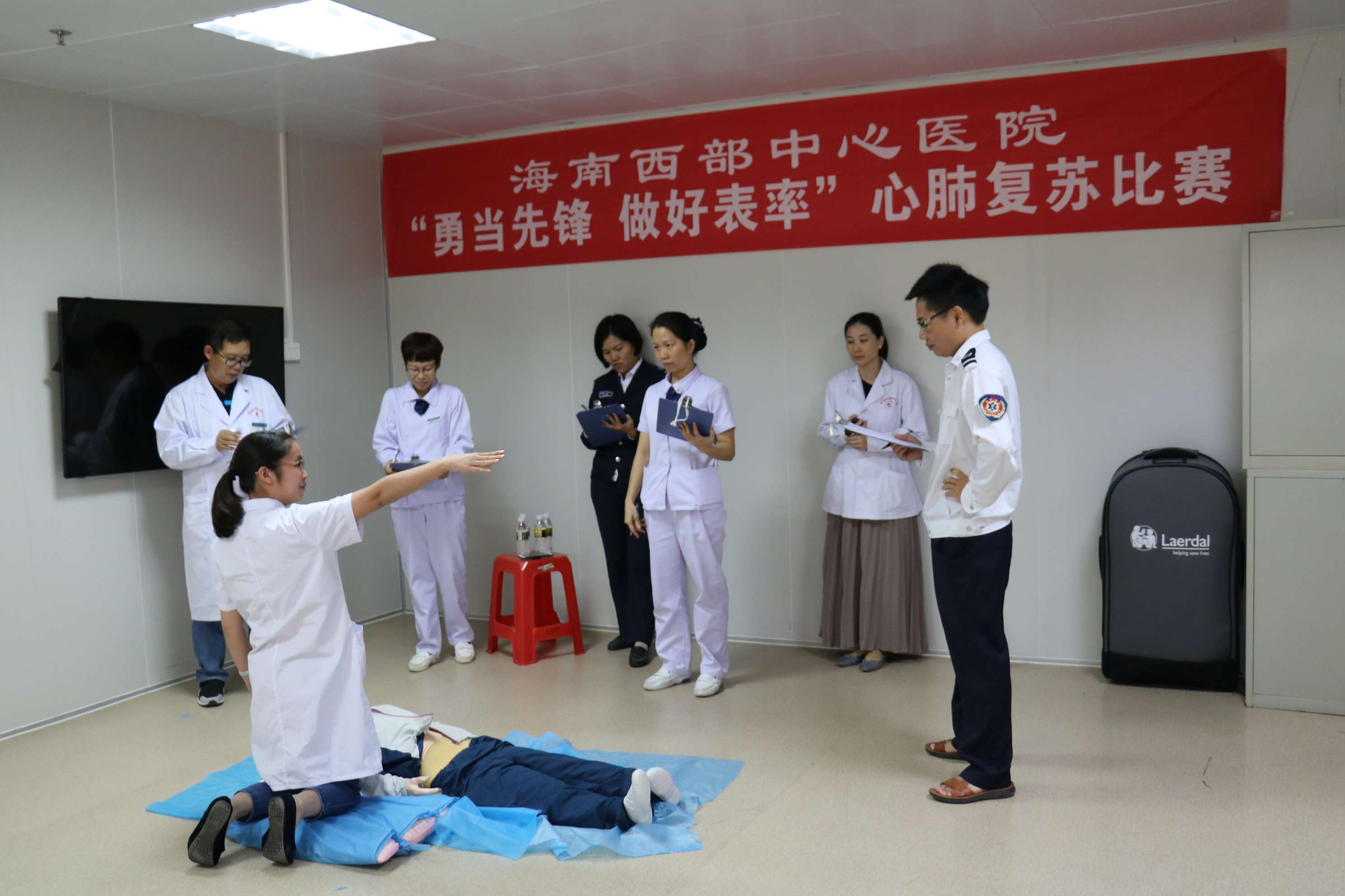 11月22日下午,由海南西部中心医院各党支部择优选送的24名党员,分别代表该院8个党支部,在该院东院区门诊二楼护理示教室开展“单人徒手心肺复苏”技能比赛。院党委副书记苏林光现场指导点评,来自该院急诊科的5名资深医护人员担任此次比赛的评委。